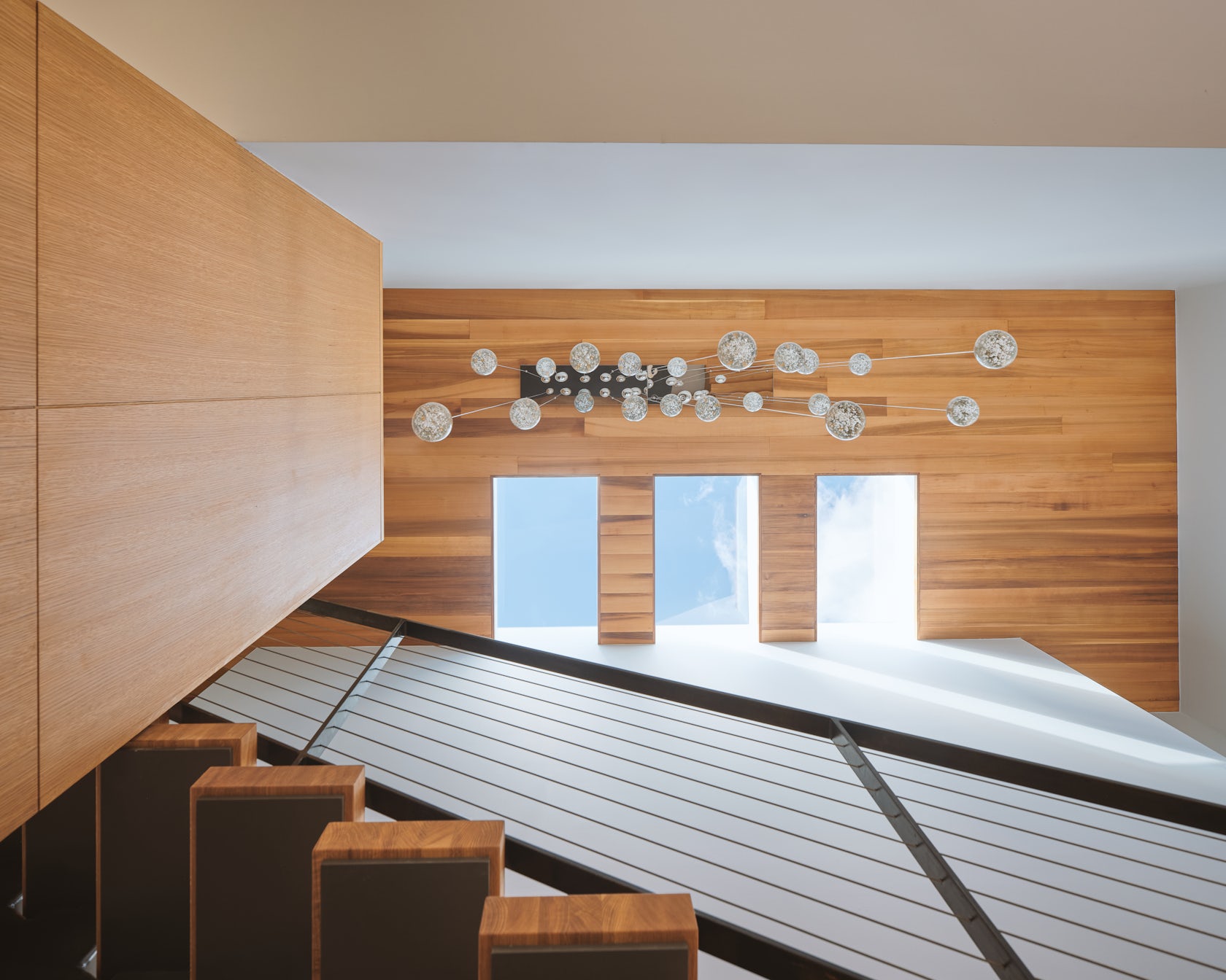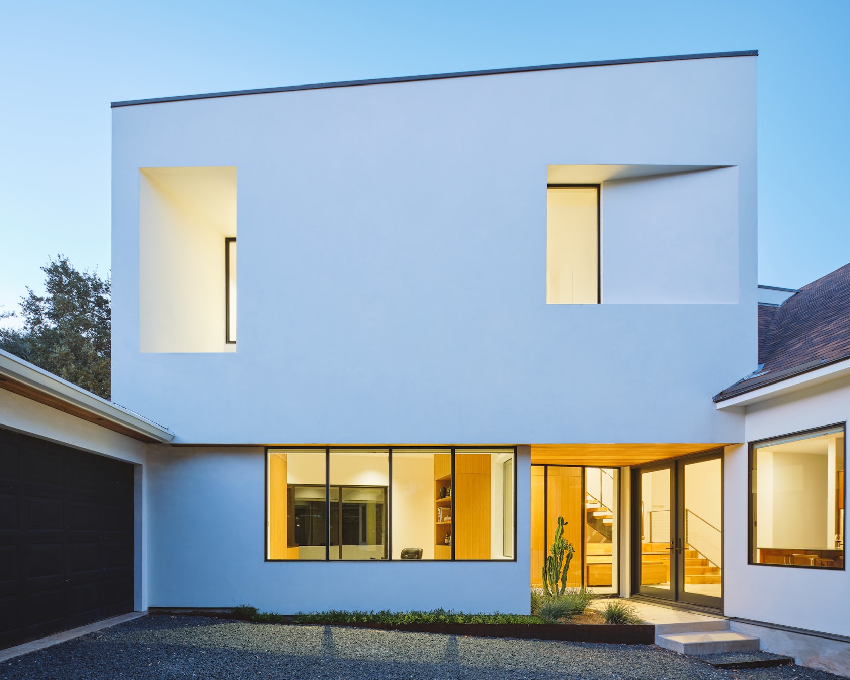 The volumes are defined by clean, discrete geometry and complemented by ample windows and skylights to create a space which feels open, bright, and connected to the outdoors.