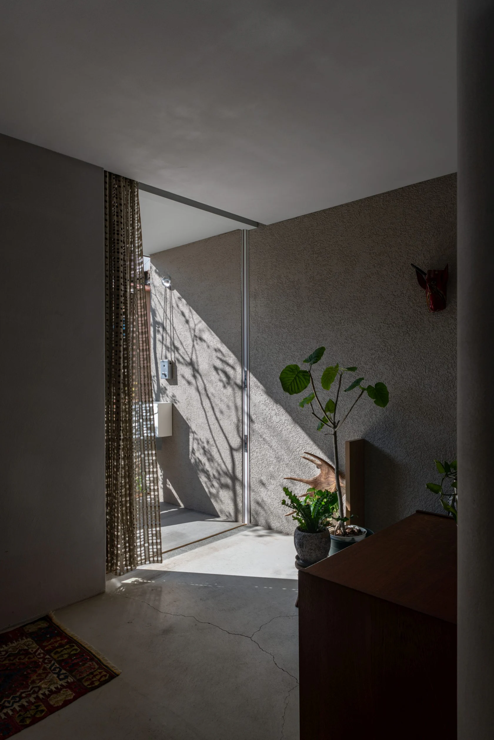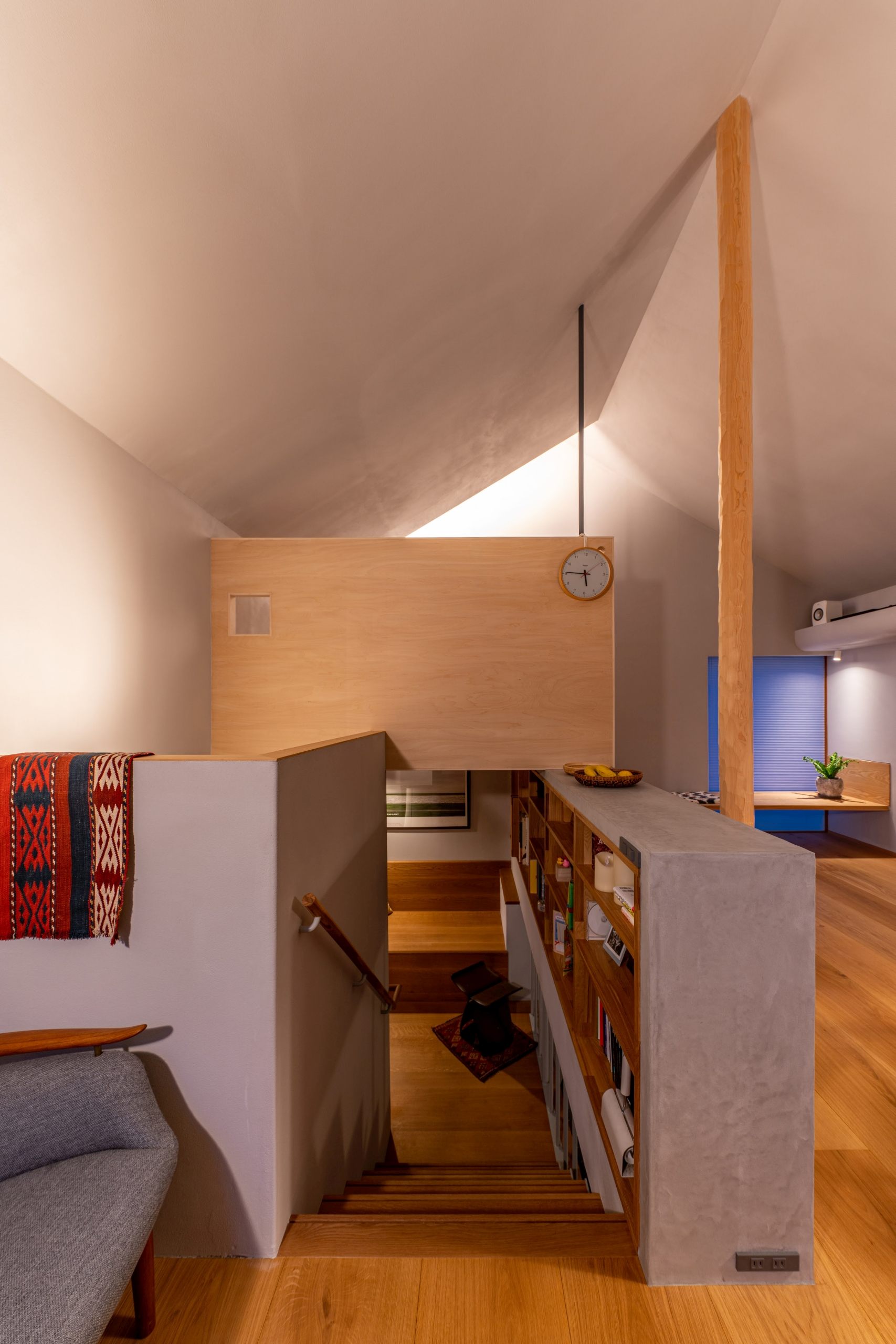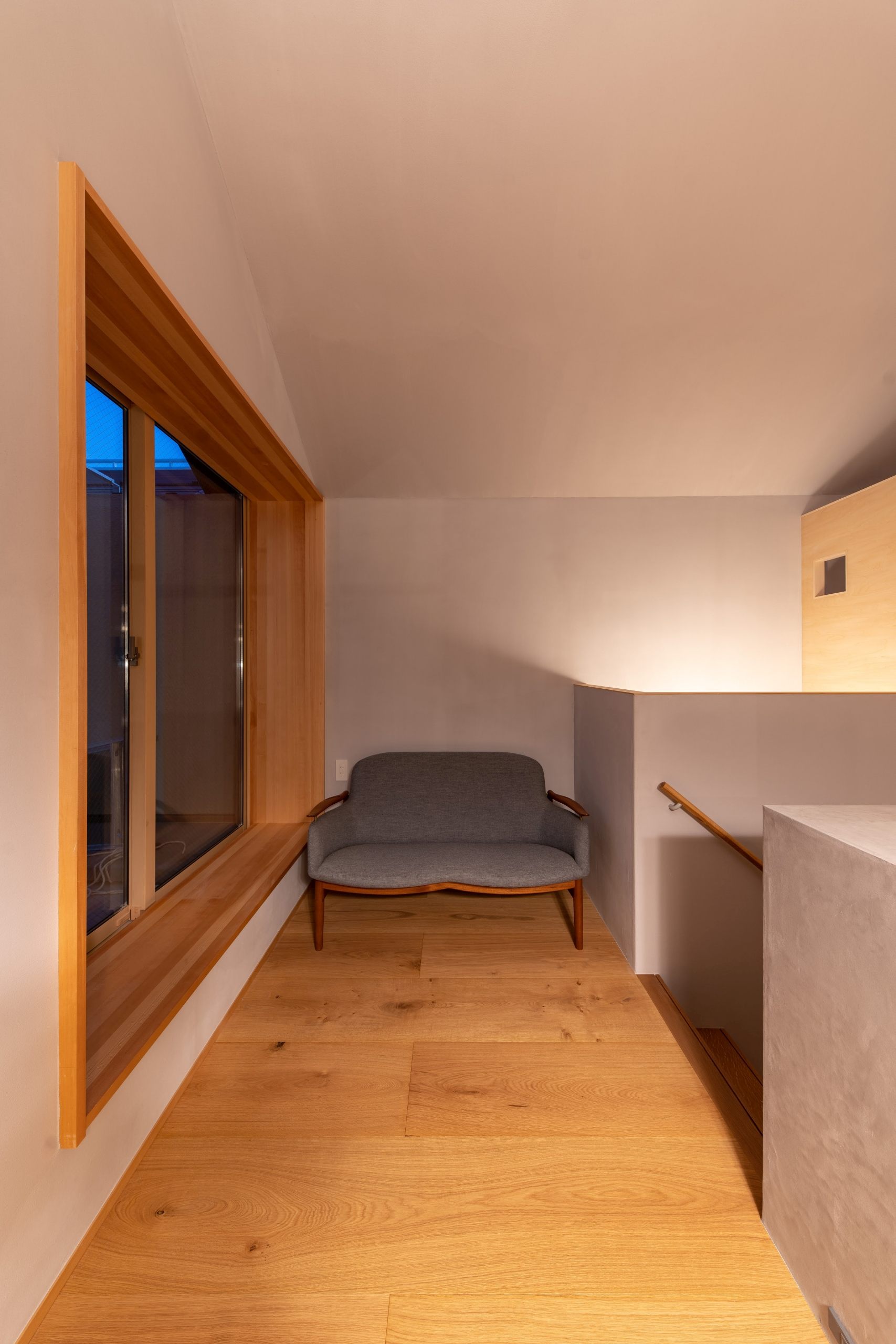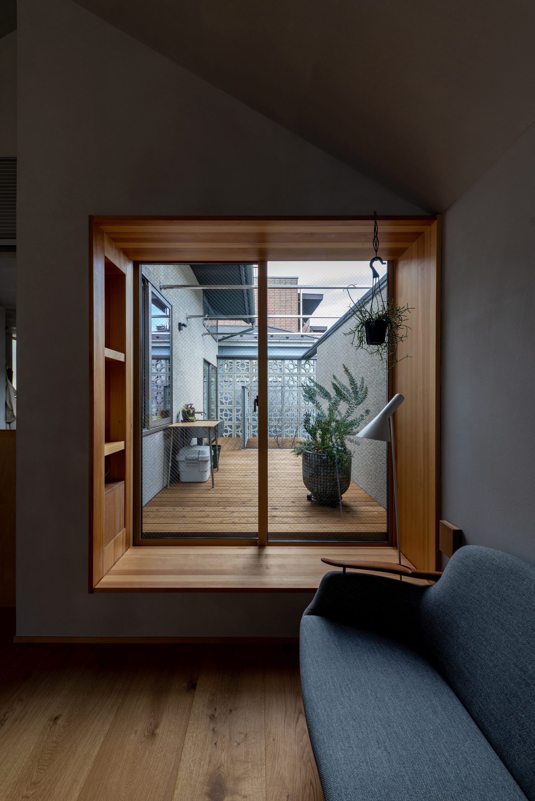 Instead of making the area bigger, all indoor spaces could be used on a regular basis, and designed all the rooms, including the entrance and toilet, to be used as place to stay. There is a living room and a small Japanese room where the family can gather, and when they want to get some distance from each other, they can spend their time reading, looking at plants, or playing musical instruments in the landing, the entrance, and other places.
